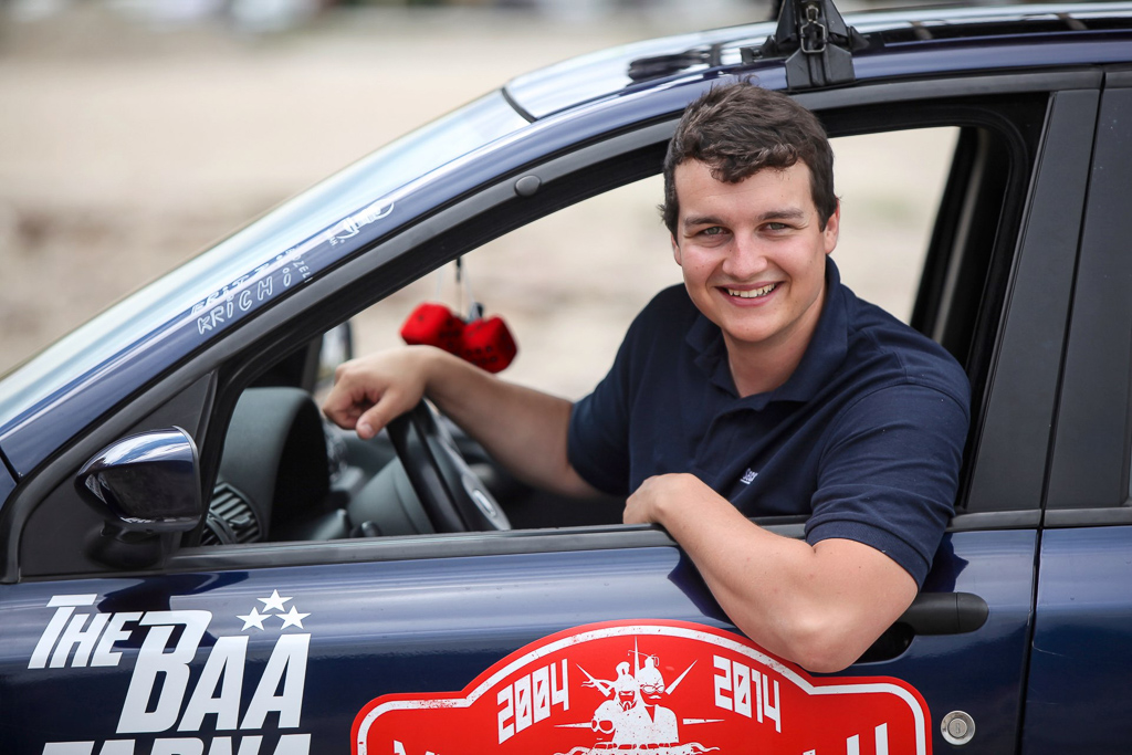Patrick wird der Chef-Beifahrersitzwärmer. Hat das in der HTL schon geübt, und macht das noch immer regelmässig an der JKU.