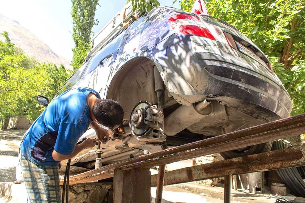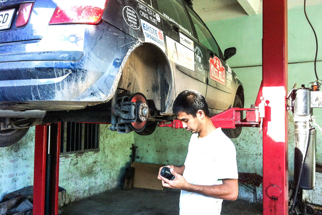 Patrick und Nicole fuhren mit ihrem roten Nissan Micra in das nächste Dorf, um einen Mechaniker ausfindig zu machen. Sie kamen mit der Meldung zurück, dass wir uns am nächsten Morgen um 9 Uhr mit ihm treffen würden.