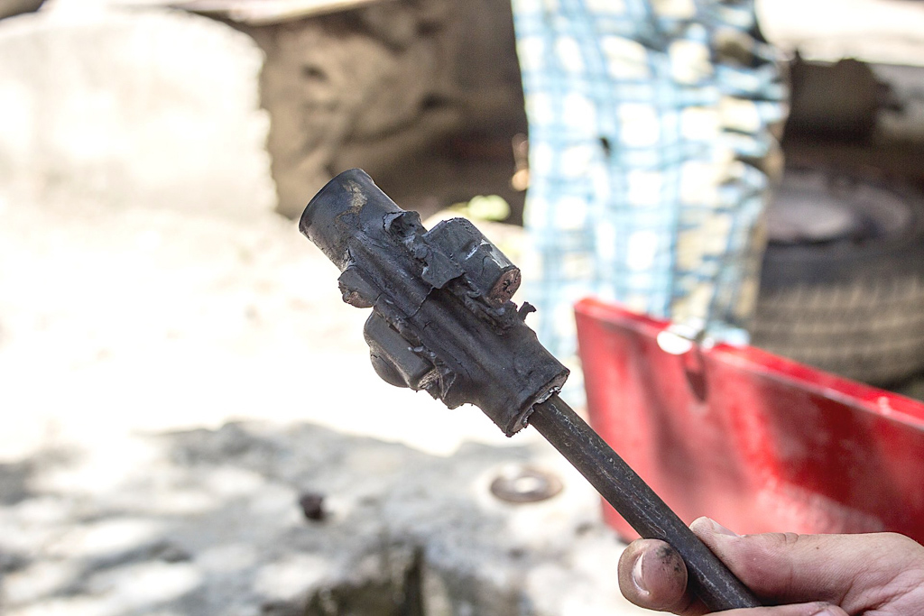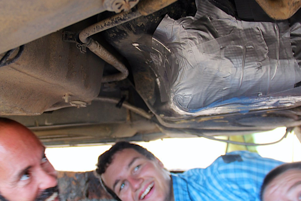 Der Auspuff hatte ein Loch in unseren Benzintank aus Plastik in der Grösse einer Euromünze geschmolzen. Vielleicht hätten wir das Alu-Blech, welches Fritz unser Mechaniker angebracht hatte, nicht drei Tage vorher in der Wüste verlieren sollen ;-)