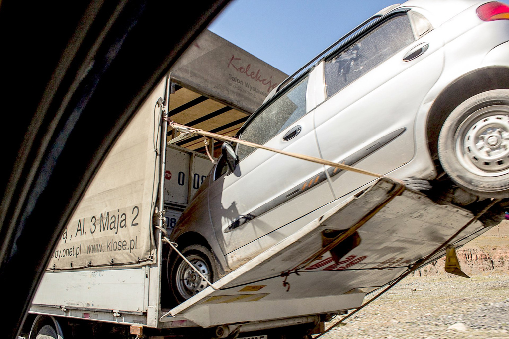 Das Ziel vor Augen beschlossen Jordan und Nadine, uns bis ins Ziel abzuschleppen. Sie mussten aber ziemlich schnell fahren, um genügend Kühlluft zu bekommen, denn ansonsten überhitzte der kleine Nissan Micra ziemlich schnell!