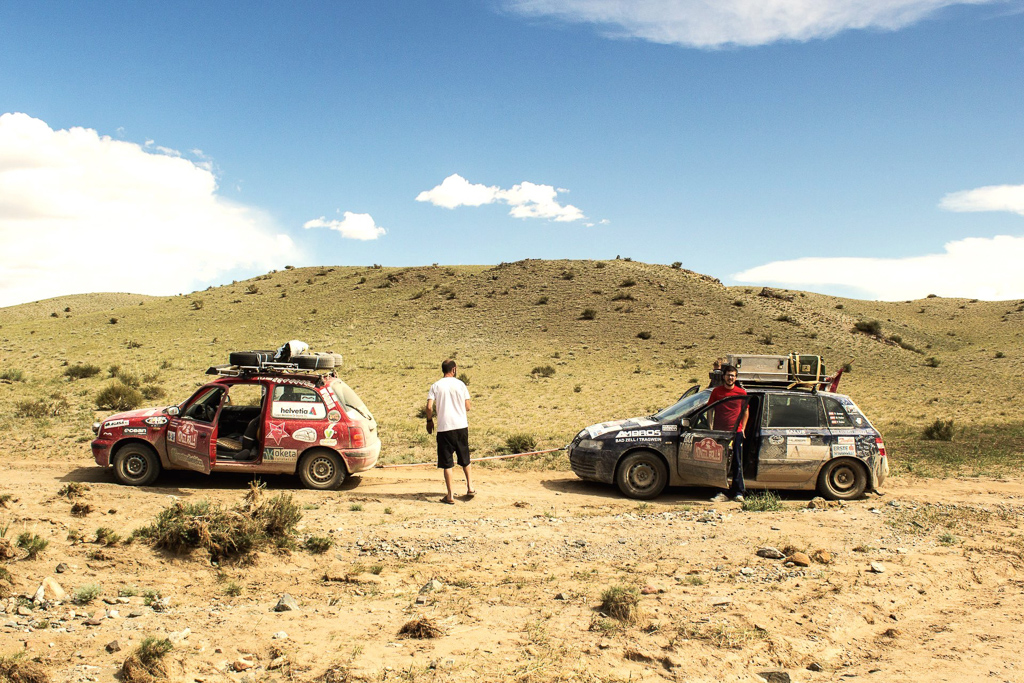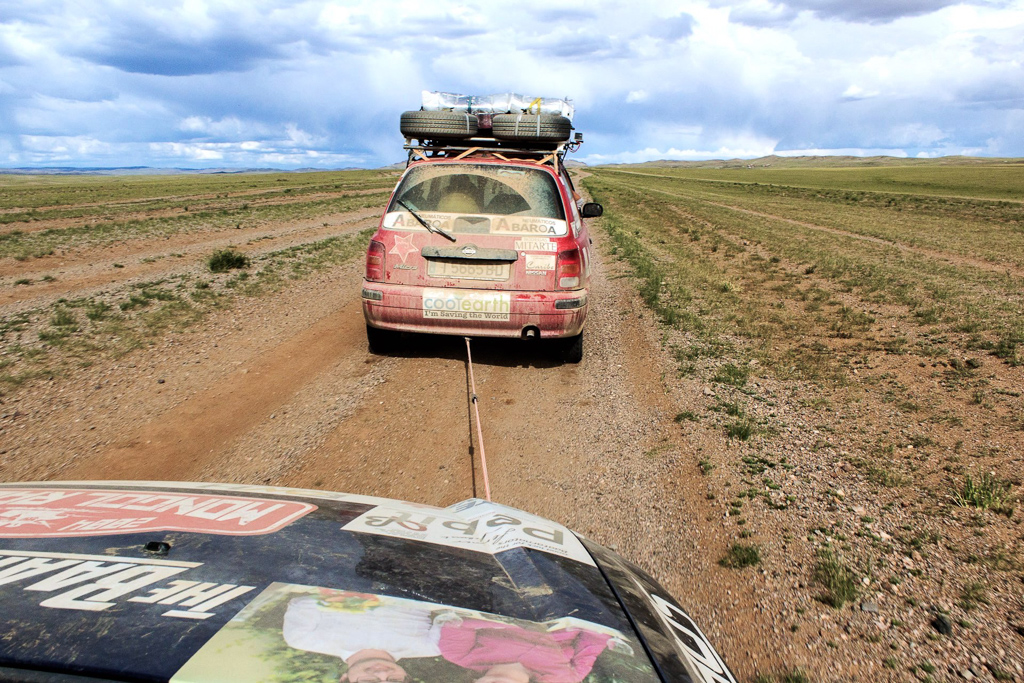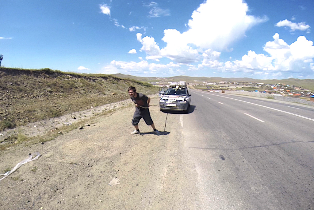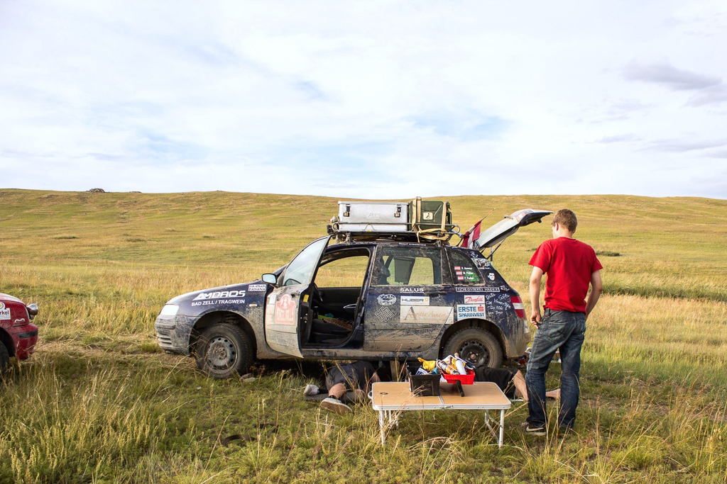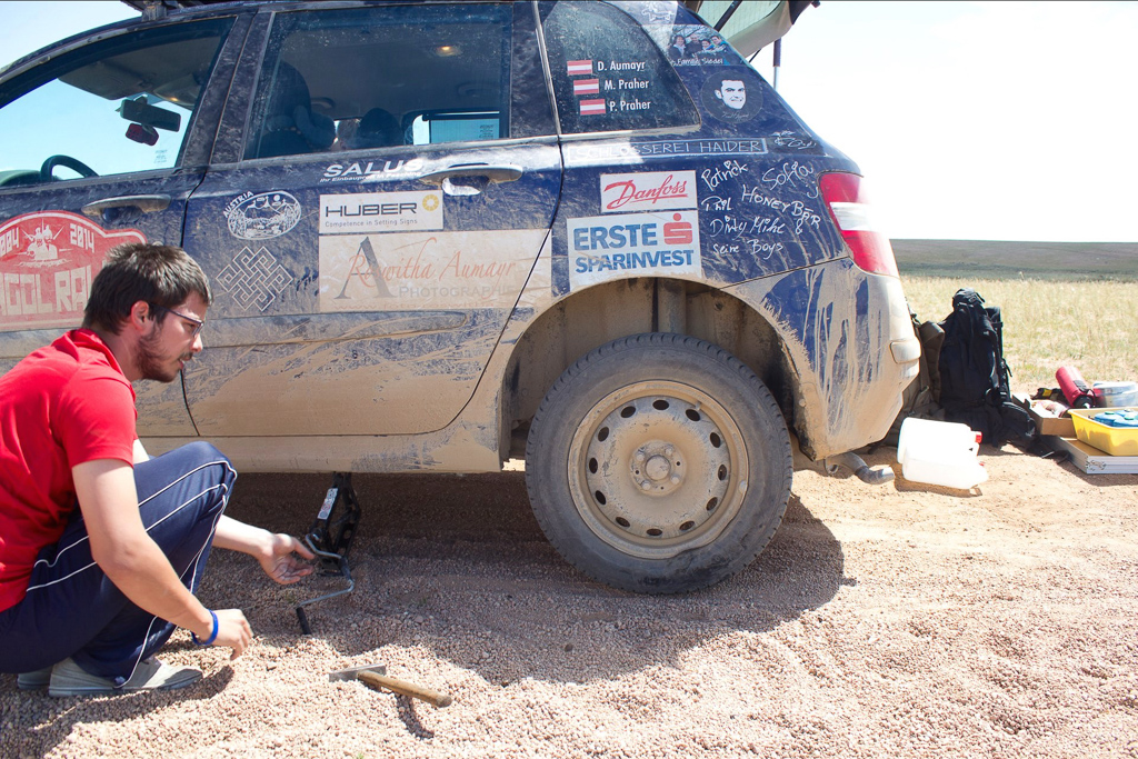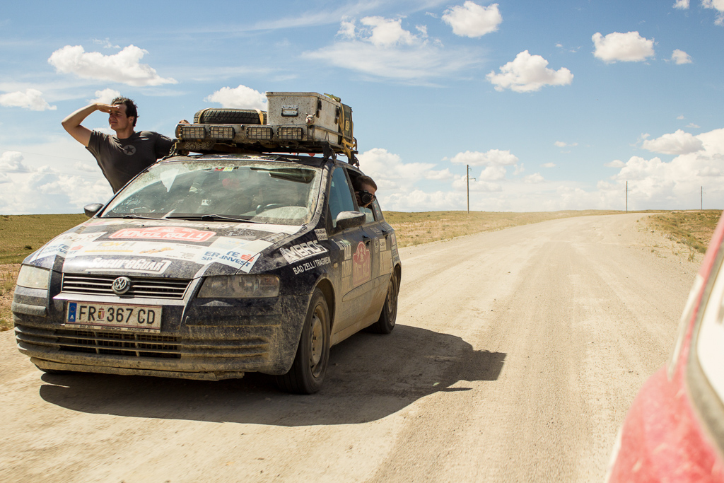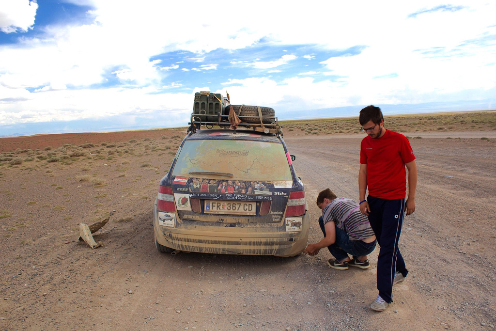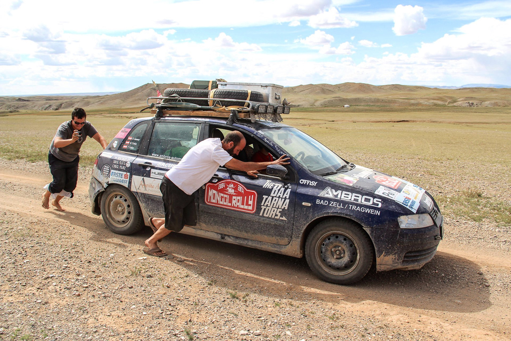 Beim dritten Mal mussten uns die Amis vom Team 12 Steppe Program sogar bergauf anschieben, um wieder in Fahrt zu kommen.