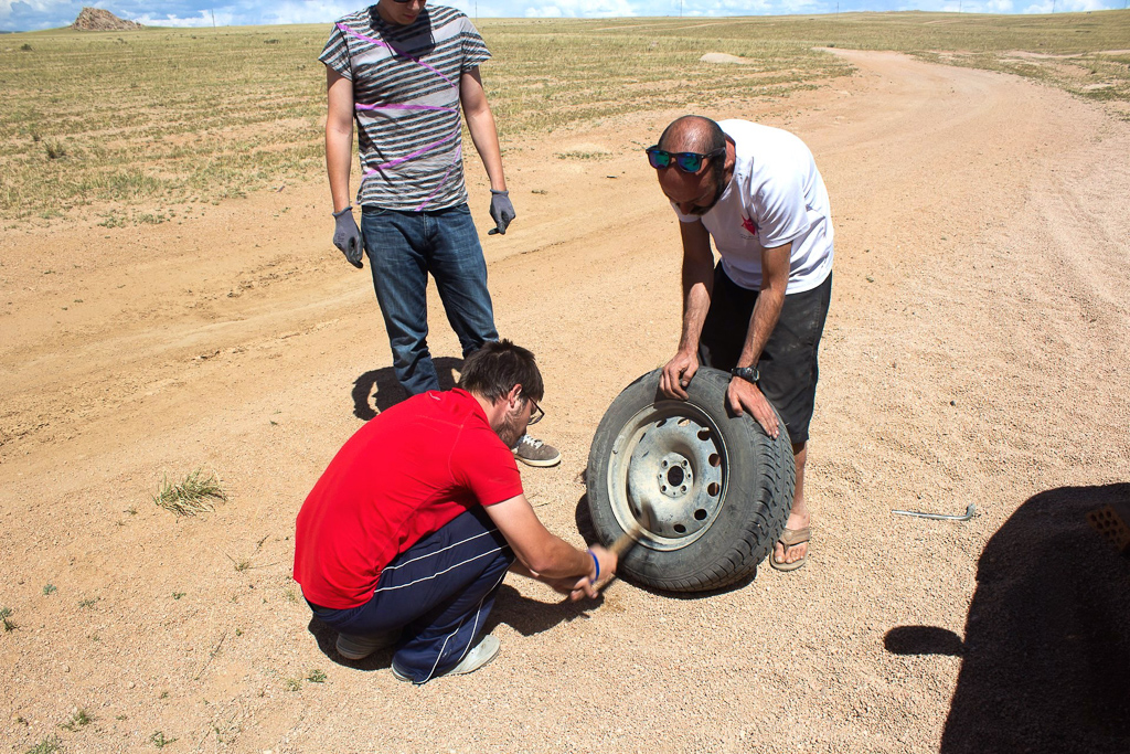 Der kam aber leider nie! Nur das Team 12 Steppe Program, mit welchem wir bereits zuvor in der Wüste gezeltet hatten, kam vorbei und bat uns seine Hilfe an.