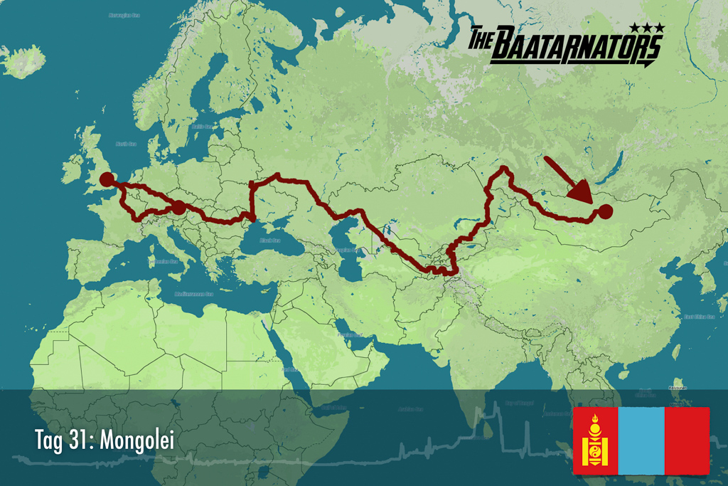 Mit vereinten Kräften erreichten wir schliesslich die Ziellinie in Ulaanbaatar am 31. Tag um die Mittagszeit.