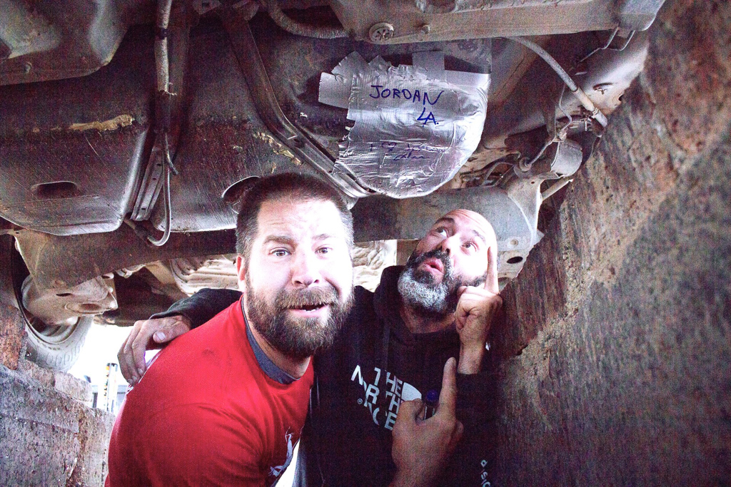 Jordan schleppte Bruno zu einem nahen Reparatur-Graben und wir warteten auf den Mechaniker.