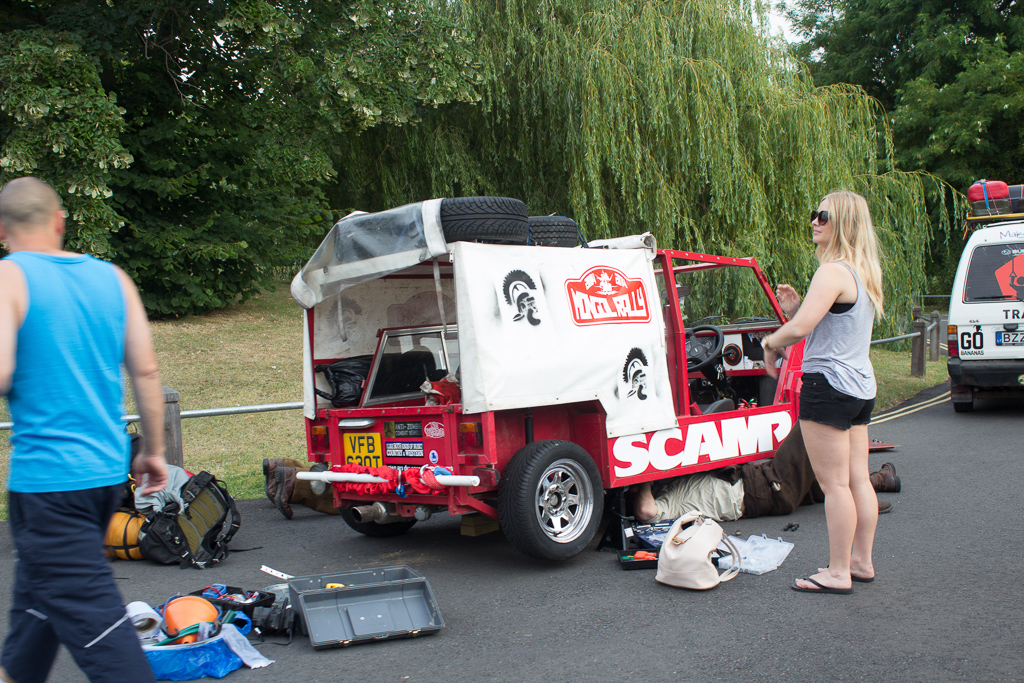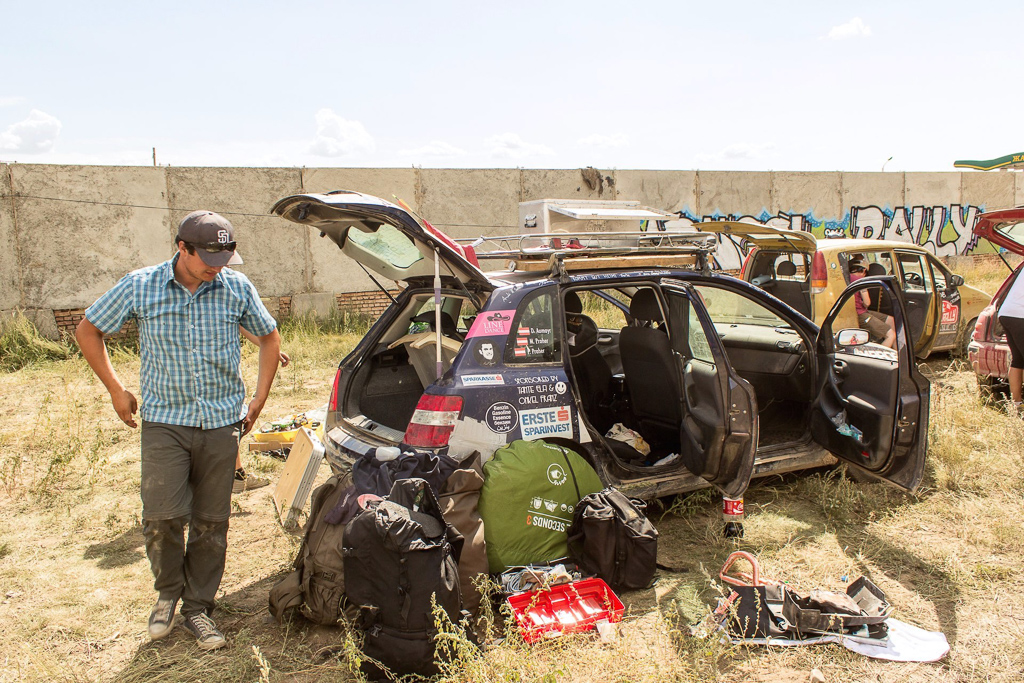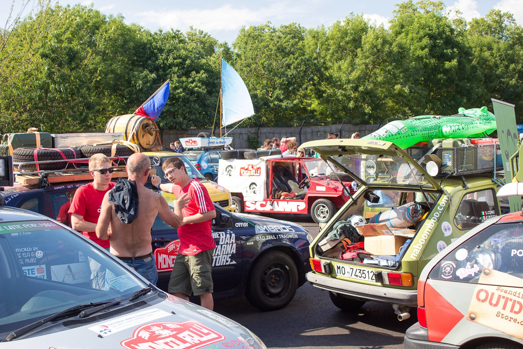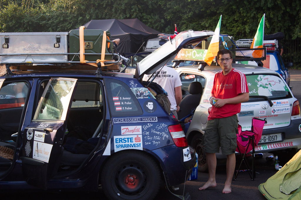 Wir trafen dort auf die restlichen 250 Teams, darunter ein Ferrari, eine Stretch-Limousine, sechs 125ccm-Motorräder und weitere steile Gefährte.
